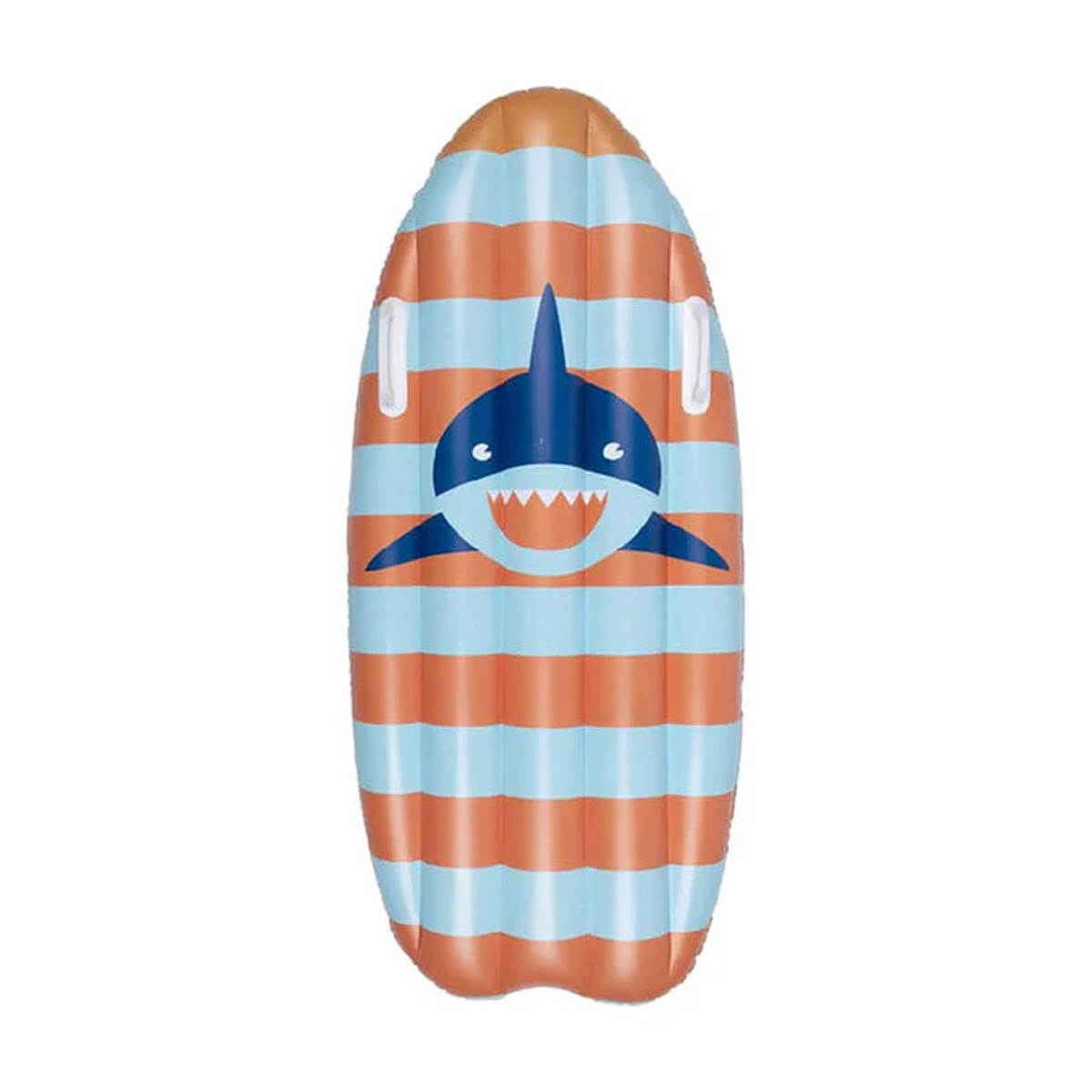 La Tabla de Surf Inflable Tiburón de Swim Essentials es resistente con un moderno estampado a rayas y un tiburón, diseñado para que los niños disfruten del verano.